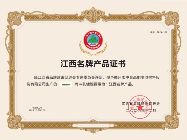 首頁 > 贛州市中金高能電池材料有限公司 > 榮譽(yù)證書